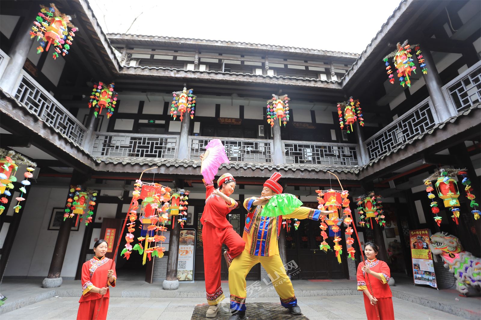 秀山网讯 灯戏闹新春,喜迎中国年。每年春节期间,重庆市秀山土家族苗族自治县的大街小巷处处张灯结彩,一盏盏花灯或挂在屋檐下、或挂在街道两旁,迎接春节的到来。“花灯客”则会在这段时间内,把将要演出的所有曲调唱、舞蹈进行反复的唱、跳,对于有瑕疵的地方进行及时修正。接下来,他们会走村入户,给村村寨寨的居民带去一场场花灯与人齐跳共舞的非遗视觉盛宴——“秀山花灯”。