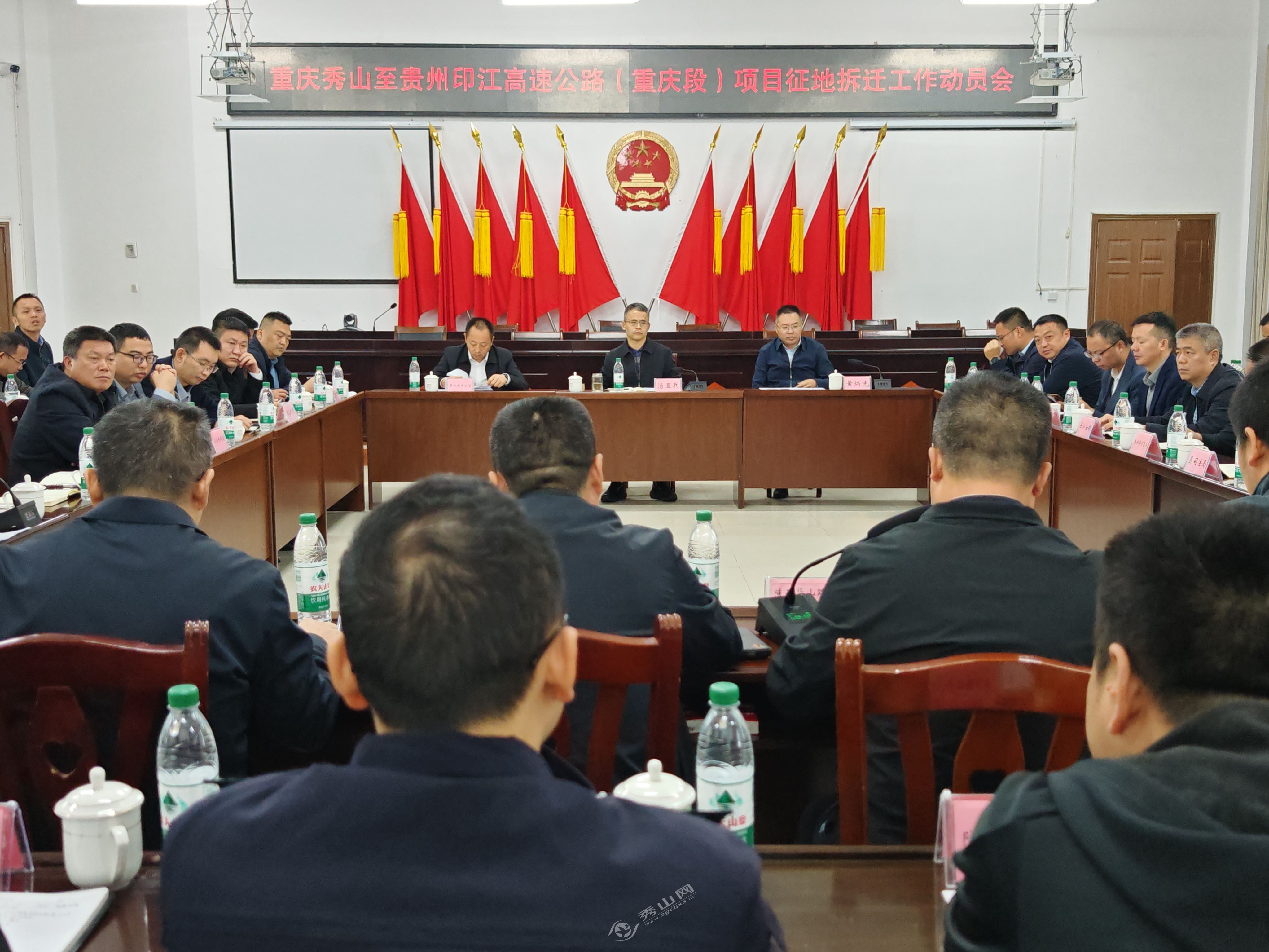 秀山网讯 10月20日,重庆秀山至贵州印江高速公路(重庆段)项目征地拆迁工作动员会在清溪场街道召开,旨在统一思想、提高认识、明确任务、压实责任,加快推进该项目征地拆迁工作。县政府副县长汤亚兵、县政协副主席黄炳光出席会议。