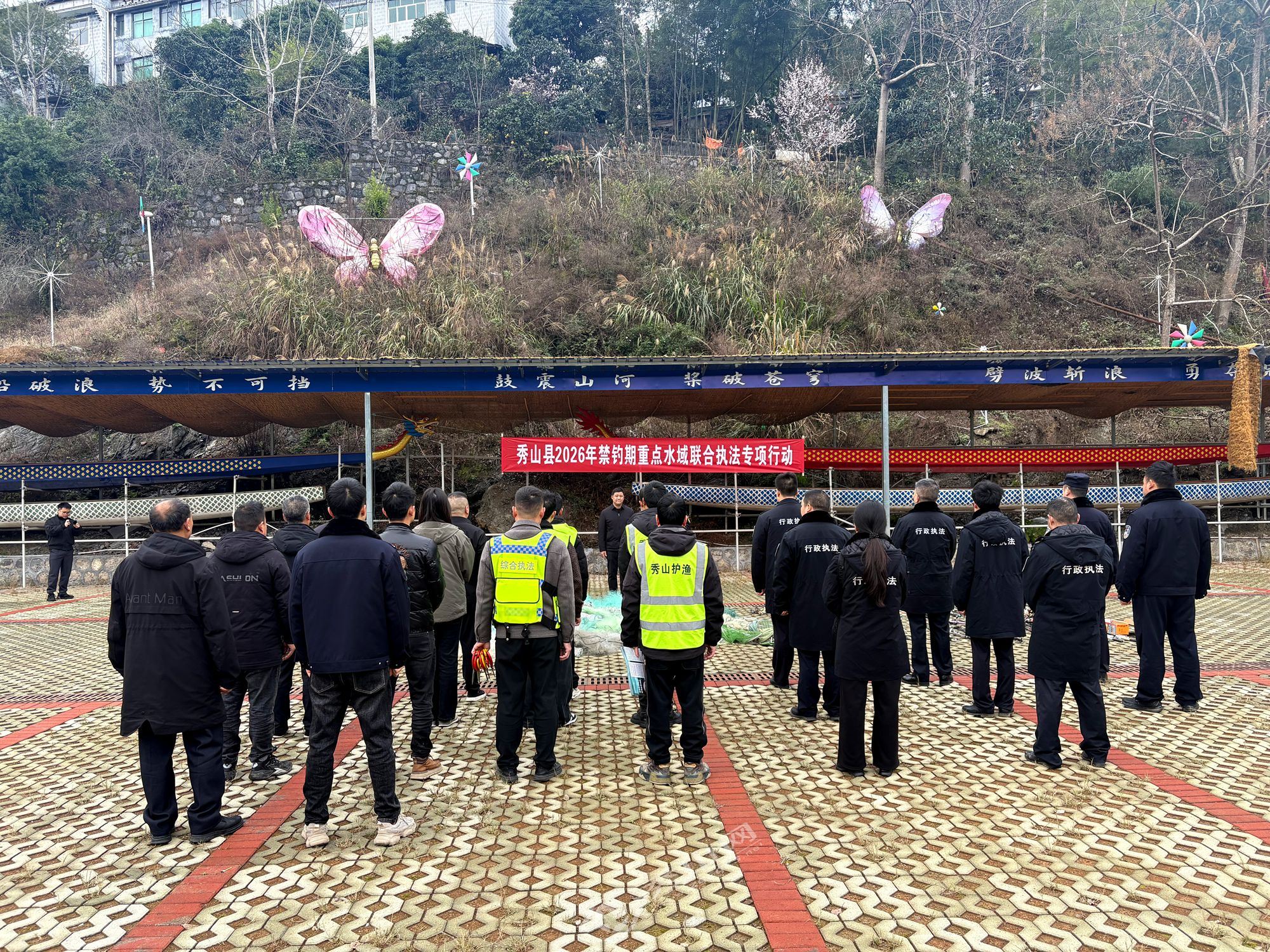 秀山网讯 为巩固我县重点水域禁捕良好态势,严厉打击非法捕捞、整治违规垂钓行为,3月2日,秀山县2026年禁钓期重点水域专项联合执法行动在大溪码头正式启动,多部门联合出击、协同作战,为我县生态保护筑牢执法屏障。