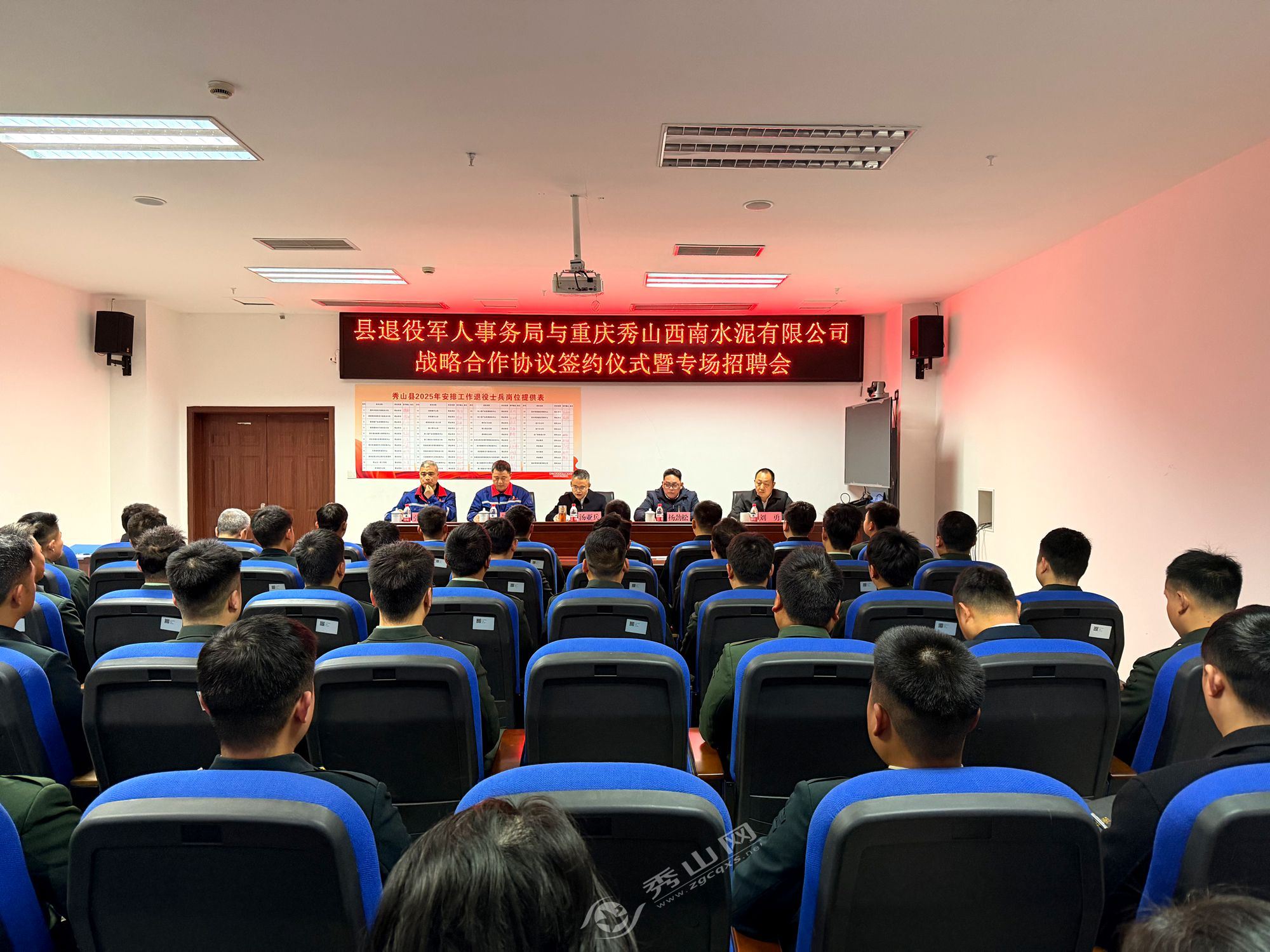 秀山网讯 3月2日,县退役军人事务局与重庆秀山西南水泥有限公司举行战略合作协议签约仪式暨专场招聘会。县政府副县长汤亚兵出席,县退役军人事务局、企业相关负责人及部分退役士兵代表参加活动。