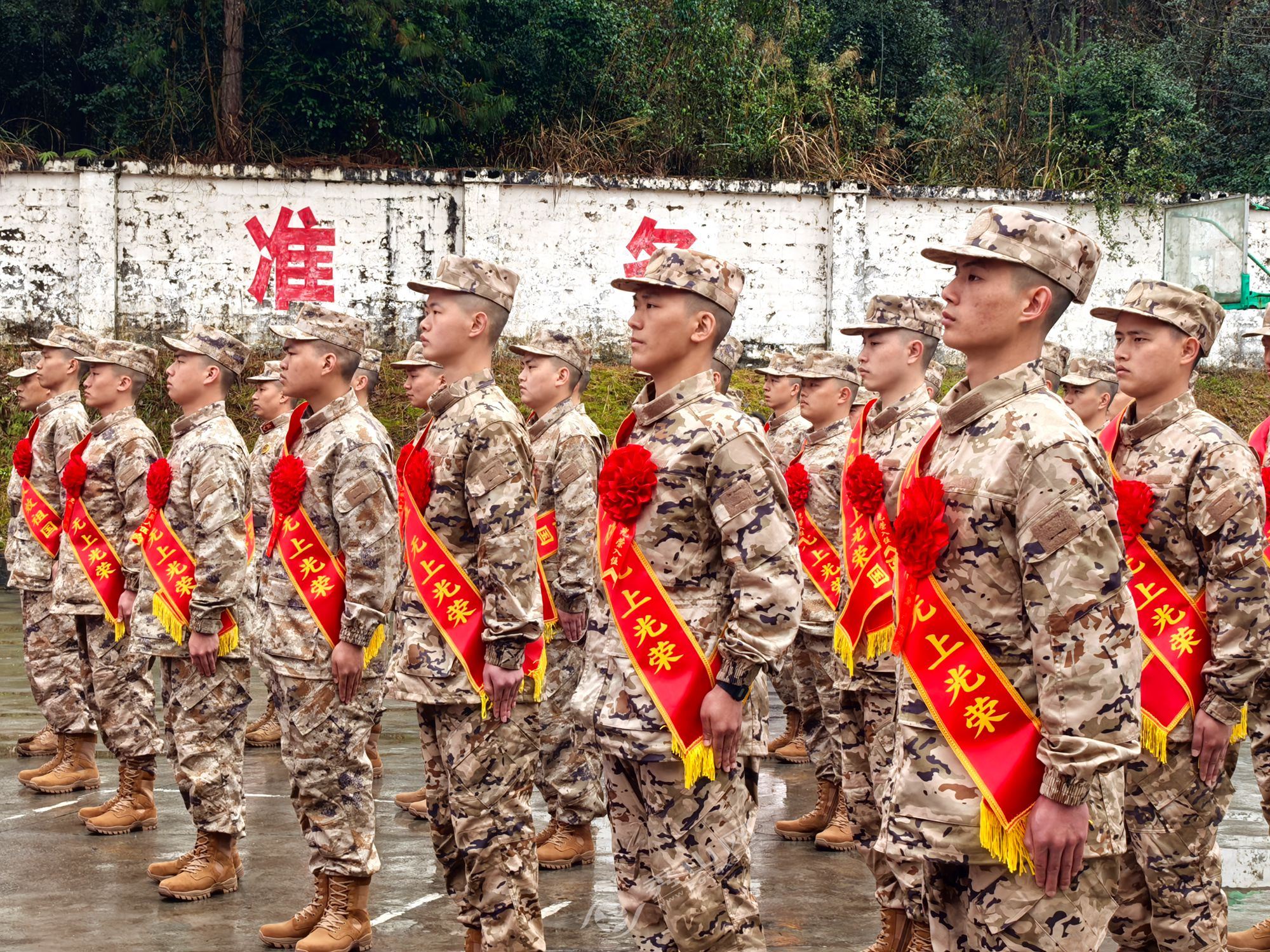 仪式上,新兵代表发言,郑重表达投身军营、献身国防、建功立业的坚定决心,承诺将苦练本领、严守纪律,努力成长为有灵魂、有本事、有血性、有品德的新时代革命军人,为家乡争光、为军旗添彩。新兵家长代表发言,对孩子光荣入伍感到自豪,鼓励他们牢记使命、不负韶华,在军营淬火成钢。全体入伍新兵高举右拳庄严宣誓,铮铮誓言铿锵有力,展现出秀山青年矢志报国的赤诚担当。仪式在激昂的《中国人民解放军军歌》中圆满结束。