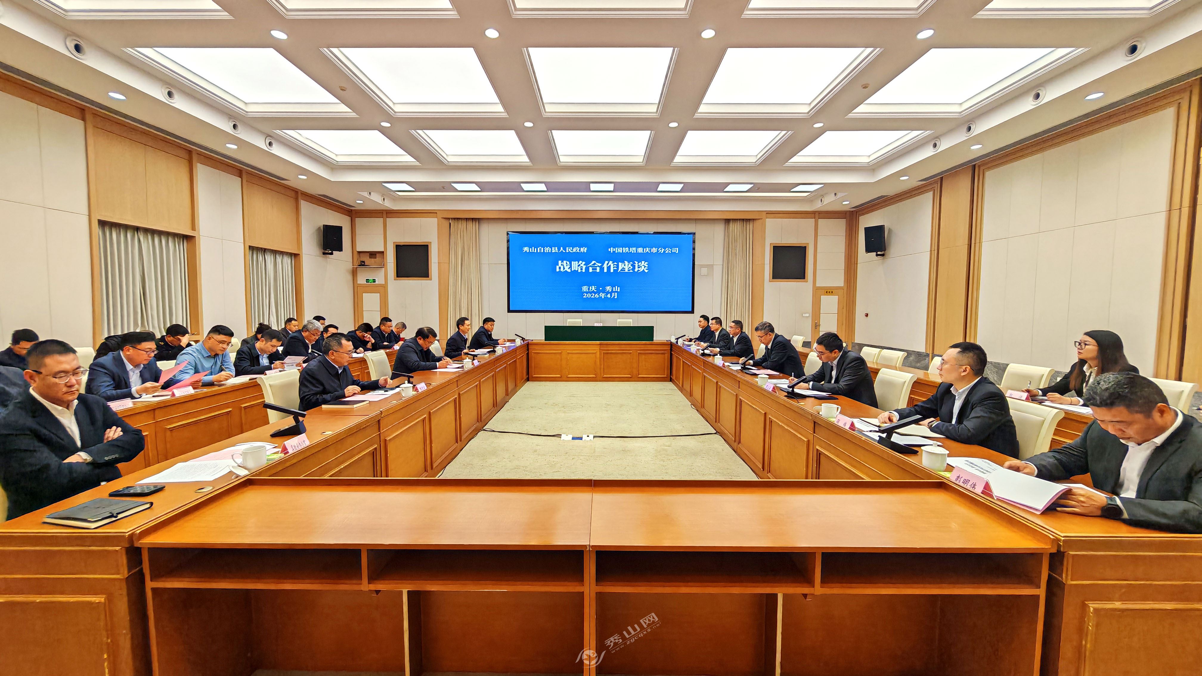 秀山网讯 4月1日,中国铁塔重庆分公司党委书记、总经理李绍良一行来秀考察座谈,并与秀山签署了战略合作协议。县委书记马文森,县委副书记、县长谭雪峰出席座谈并见证签约。
