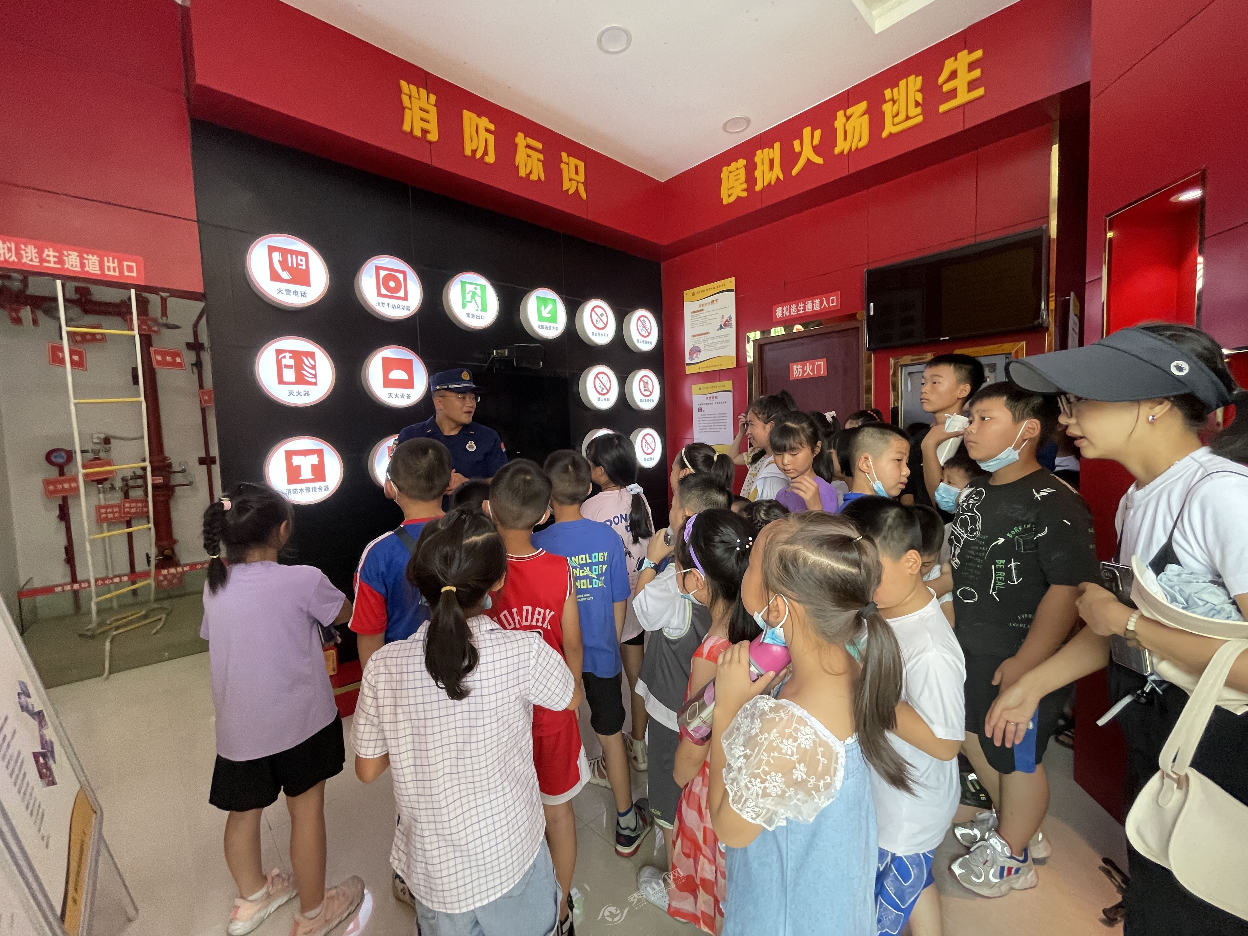 在消防宣传员的带领下,萌娃们走进消防科普教育基地,听宣传员讲解消防服的用途、火灾基本常识、防火知识、在火灾紧急情况下如何逃生等基本应急知识,并进行了火灾模拟逃生演练。